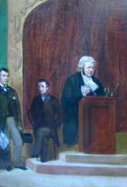In 1874, Gilbert wrote a short libretto on commission from producer–composer Carl Rosa, whose wife would have played the leading role, but her death in childbirth cancelled the project and left the libretto an orphan. Not long afterwards, Richard D'Oyly Carte was managing the Royalty Theatre, and he needed a short opera to be played as an afterpiece to Offenbach's La Périchole. Gilbert already had available the libretto he had written for Rosa, and Carte suggested that Sullivan write the score. The composer was delighted with it, and Trial by Jury was composed in a matter of weeks. D. H. Friston's engraving of the original production of Trial by JuryThe piece is one of Gilbert's humorous spoofs of the law and the legal profession, based on his short experience as a barrister. It concerns a breach of promise of marriage suit. The defendant argues that damages should be slight, since "he is such a very bad lot," while the plaintiff argues that she loves the defendant fervently and seeks "substantial damages." After much argument, the judge resolves the case by marrying the lovely plaintiff himself. With Sullivan's brother, Fred, as the Learned Judge, the opera was a runaway hit, outlasting the run of La Périchole. Provincial tours and productions at other theatres quickly followed. Fred Sullivan was the prototype for the "patter" (comic) baritone roles in the later operas. F. C. Burnand wrote that he "was one of the most naturally comic little men I ever came across. He, too, was a first-rate practical musician... As he was the most absurd person, so was he the very kindliest..." Fred's creation would serve as a model for the rest of the collaborators' works, and each of them has a crucial comic little man role, as Burnand had put it. The "patter" baritone (or "principal comedian", as these roles later were called) would often assume the leading role in Gilbert and Sullivan's comic operas, and was usually allotted the speedy patter songs. After the success of Trial by Jury, Gilbert and Sullivan were suddenly in demand to write more operas together. Over the next two years, Richard D'Oyly Carte was one of several theatrical managers who negotiated with the team but were unable to come to terms. Carte also proposed a revival of Thespis for the 1875 Christmas season, which Gilbert and Sullivan would have revised, but he was unable to obtain financing for the project.