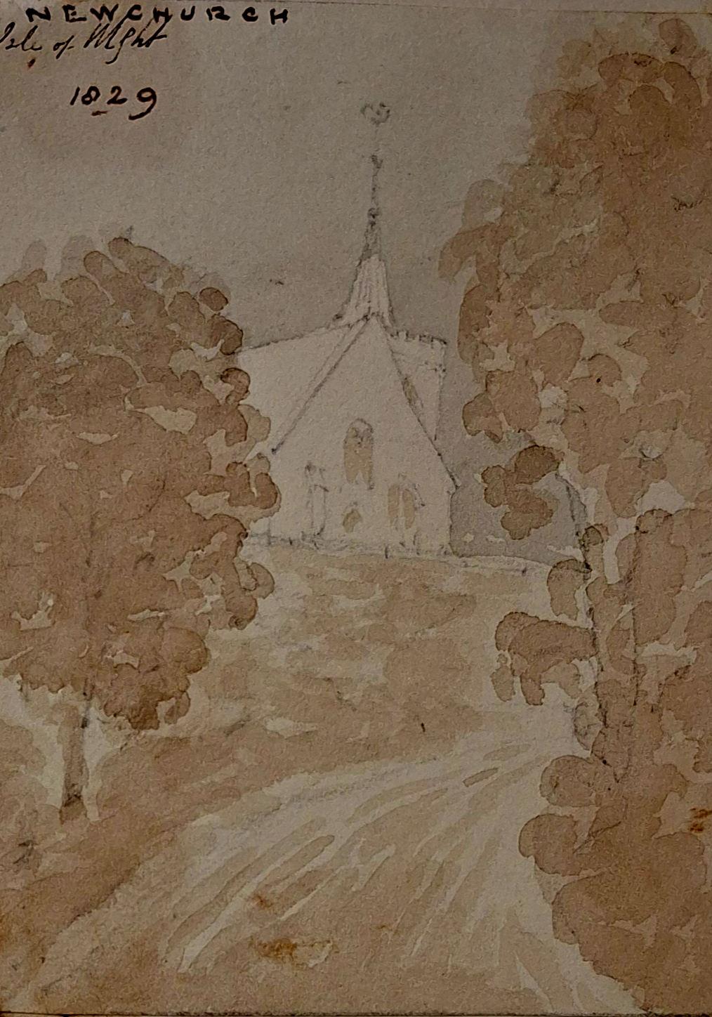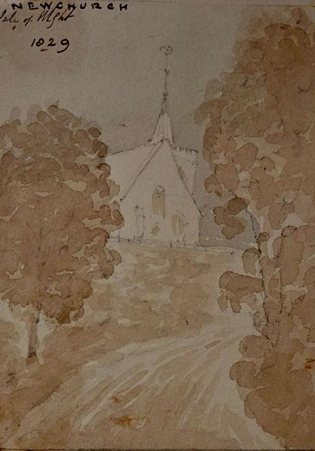There are six bells, four of which were founded in 1810 by Thomas Mears of London; the other two are inscribed 'ANNO 5189 [1589]. ANTHONY BOND MADE ME 1626.' The ancient communion pieces consist of a chalice 8 inches (200 mm) high and 3.5 inches (89 mm) in diameter, with the date 1620 pricked on the cover. The alms-dish is inscribed 'The gift of Mrs. Dillington to the Parish of Newchurch anno 1737.' There is also a Sheffield plate flagon, probably given at the same time, inscribed 'DEO ET ALTARI SACRUM.' A register has records of many events since 1582, and which includes information of a Chichester earthquake that occurred on 30 November 1811 at 3.20 am, which was felt in Portsmouth at Rydes and in many other parts of the Isle of Wight.