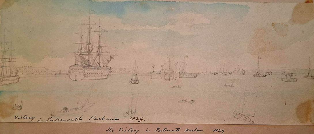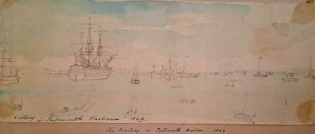 inscribed and dated " Victory in Portsmouth Harbour 1829"