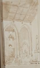 The well-known south doorway at Wedmore church - reset in a 15th-century wall - is flanked by compound shafts with stiff-leaf capitals exactly like those in the part of Wells Cathedral nave that was built in the early 1200s. The present nave and aisles at Wedmore were built in the 1400s; but among the varied stone corbels supporting the roof are two at the west end of the south aisle which, unlike all the rest, are of blue Lias carved with naturalistic foliage. One has long, oak-type leaves and the other has ivy leaves with conspicuous long stems. Both, on examination, prove to be former pillar capitals later reused as corbels. The collar around the pillar top is still visible, and surplus carving has been crudely hacked away where the stone has been reset as a corbel. Both foliage carvings can be very closely matched with the blue Lias capitals on the upper part of the Chapter House stairs and in the Chapter House entry at Wells, which were built c.1270-1290. Not only do these reused fragments of the previous Wedmore church reinforce the close connection between Wedmore and Wells in the 13th century, but they also serve to suggest definite dates at both the beginning and the end of the 1200s when Wedmore church was being improved to the highest standards. {12}
