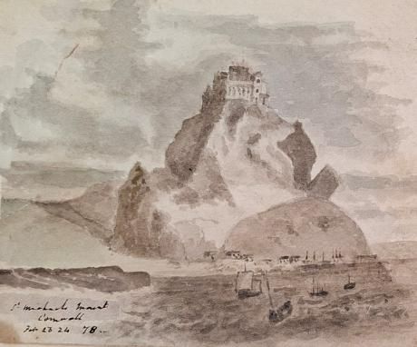St Michael's Mount Karrek Loos yn Koos, meaning "hoar rock in woodland" is a tidal island in Mount's Bay near Penzance, Cornwall, England, United Kingdom. The island is a civil parish and is linked to the town of Marazion by a causeway of granite setts, passable (as is the beach) between mid-tide and low water. It is managed by the National Trust, and the castle and chapel have been the home of the St Aubyn family since around 1650.