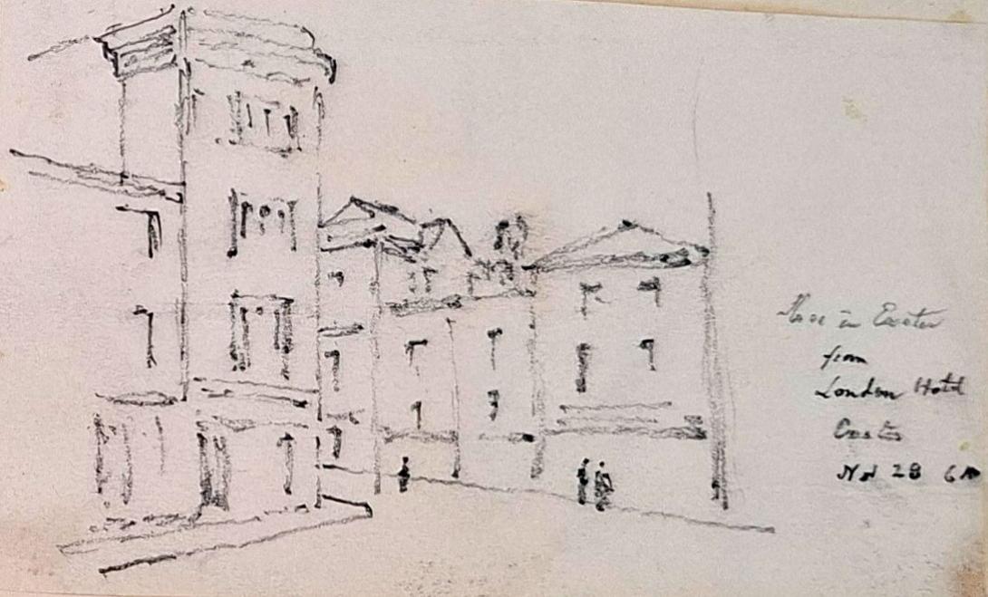 Street in Exeter July 1832 , view from New London Hotel Exeter & Guildhall Exeter Nov 28 1861