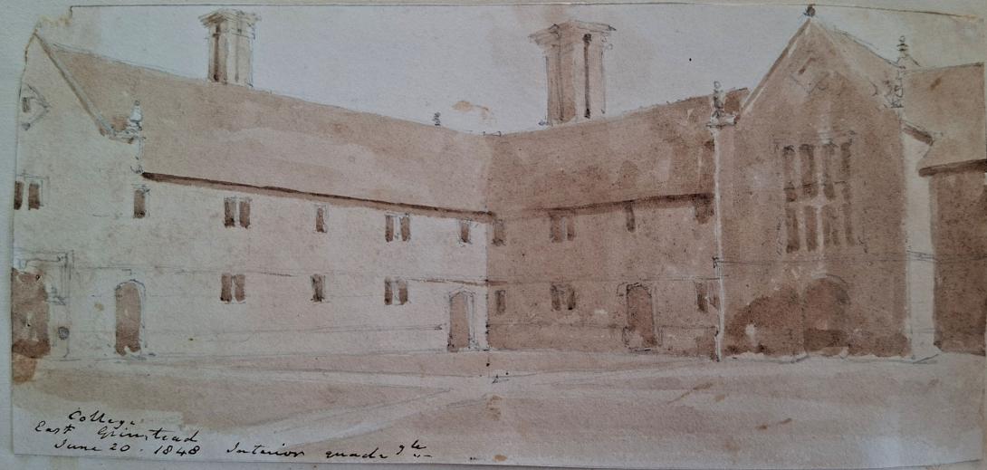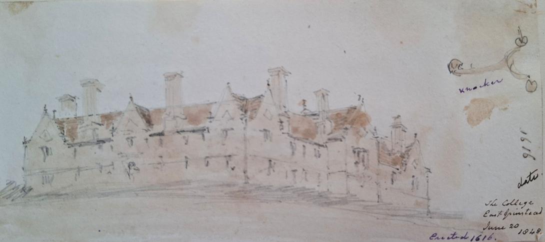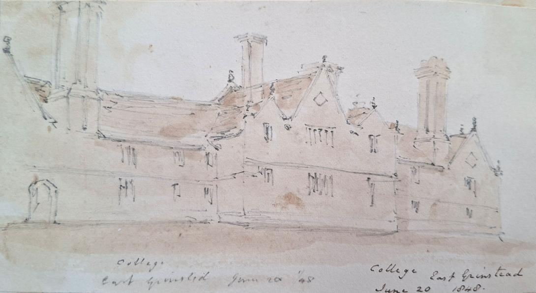 inscribed and dated " The Collge/ East Grinstead/ June 20 1848/ erected 1616" and inscribed and dated " college/ East Grinstead June 20 1848" and further  inscribed and dated " College/ East Grinstead/ June 20 1848 Interior Quadrangle"
