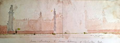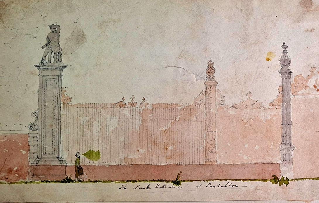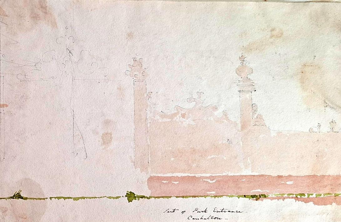 inscribed "The Park Entrance at Carshalton / Part of Park Entrance Carshalton/ 1835/ Iron Railing to former entrance of Carshalton Park."